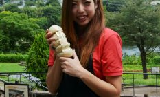 津久井湖観光センター(相模原市緑区太井)に販売員として務める。津久井で生まれ育ったという若林さんは、子供が生まれたことがきっかけで、家計を助けようと約2年前に入社した。努力していることは「丁寧に接客するのは当然ですが、リピーターになってもらえるようにほかの季節の魅力なども伝えています」と笑顔で話す