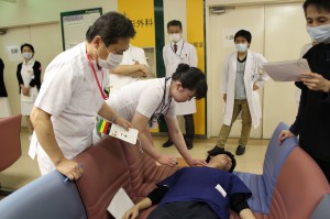 訓練には同病院の医師や看護師ら約100人が参加。高野院長不在という想定で院内に災害本部を立ち上げ、院内の非常放送で入院患者に地震の発生を伝えると同時に、転倒などによるけが人や症状が悪化したケースがないか、迅速に確認した。
