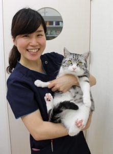 猫専門「さがみはら ねこの病院」(相模原市中央区清新)の院長。診察では「優しく話しかけ、ゆっくりとした動作で接するなど、猫の苦痛を和らげてあげたい」といい、「飼い主さまにも安心してもらえるよう、丁寧に健康状態を伝えるよう心がけています」と話す。「室内で過ごすことの多い猫は外出にストレスを感じます。日ごろからキャリーを部屋に出し、その中でおやつを与えるなど、通院に慣れることで健康を維持してもらいたい」と、キャリートレーニングにも力を入れている。今後も「子猫の里親探しや、猫に特化した治療法も勉強し、猫と飼い主さまの心と体の健康を守っていきたい」と目を輝かせる。(2016年7月20日号掲載)