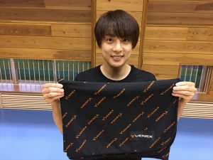 トレーナーズクロスを広げる佐々木選手