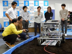 相模原市内創業のアルプス技研(横浜市西区)は3日、アルプス技研第1ビル(相模原市緑区西橋本5)で社員が製作したロボットで競う「アルプスロボットコンテスト(ARC)」を開いた。遠方から駆け付けた同僚や家族からの声援もあり、熱気あふれる会場でロボットが激戦を繰り広げた。
