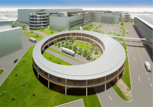 リングではレストランやコンビニ、カンファレンスルーム、託児所、ジムを備え、施設で働く人に快適な環境を提供する。ペデストリアンデッキで全棟をつなぐことで歩行者と車両を分離し、快適で安全な移動を可能にするとともに、人々の交流やビジネスの創出を促す。