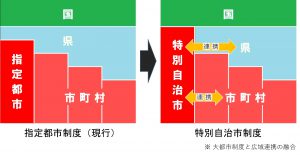 特別自治市は、政令市が道府県の事務・権限を担う制度で、都府県と政令市の重複する業務「二重行政」を解消して人員やコストを縮小できると期待される。ただし、現行の地方自治法に類似した制度がなく、全国20政令市でつくる指定都市長会が法制化に向けた動きを強めている。