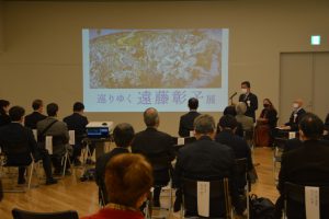 早々に会場入りして、新幹線に乗って来たというファンと交流する遠藤さんの姿が(分かりやすい)。遠藤さんの教え子、上田市の関係者、長野二紀会の方などを紹介していただいた後、写真撮影やインタビューなどを済ませる。