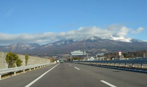 遠藤さんの個展「巡りゆく 遠藤彰子展」のオープニングセレモニーは同日午前10時半から。間に合うようにと相模原を出たのは午前5時半。町田街道から高尾ICで圏央道に乗り、鶴ケ島JCTから関越道に入った頃日の出を迎える。上信越道でトンネルを抜けると、目の前に広がるのは雪を被った浅間山の壮大な景色が広がっていた。