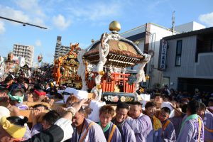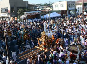上溝商店街を中心に各地区の神輿11基と子供神輿8基、山車8台が歩行者天国を巡行する。夜のとばりが降りる頃には、それぞれの神輿に提灯の灯がともり、幻想的な光景がさらに祭りの華やかさを演出する。各地域に伝承されている「まつりばやし」などの郷土芸能も披露される。さまざまな露店が立ち並び、来場者数は40万人ともいわれている。