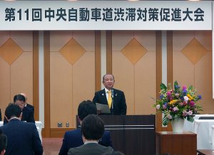 意見発表を行った中央自動車道渋滞対策沿線経済団体協議会の石橋廣氏(県トラック協会専務理事、相模原商工会議所)は、高速道路網について「輸送時間の短縮や定時制の確保といった効率な運送、生産性の向上に大きな効果をもたらす。トラック運送事業の経営に必要不可欠なもので、生命線と言っても過言ではない」と説明し、「今後求められる生産性の向上や労働環境の改善を図るため、高速道路の利用の促進を図りたい」と語る。