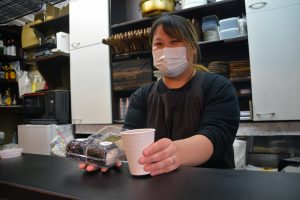 1階はカウンター8席、2階は4人掛けテーブル3卓とカウンター3席。カフェとしての営業時間は午前7時から午後5時まで。おにぎりやコーヒーはテイクアウトも可能で、事前の予約があれば、予算に応じて仕出し弁当やオードブルも作る。衣舞季さんは「会社の会議や、子供会などの食事にぜひ」と呼び掛ける。