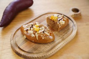 同大学人間社会学部社会マネジメント学科3年生が考案した「コーヒーロール(おいも&チョコ&ナッツ)」(302円)はコーヒーを練り込んだ生地に、さつまいもの甘露煮とチョコチップ、アーモンドをのせ、焼き上げたもの。高等部3年生が考案した「林檎とクリームチーズのふわふわパン」(302円)ははちみつクリームと焼き林檎を包み焼きあげたもの。同大学が教育交流を行っている高校の生徒2年生の「シナモンと紅茶のデニッシュ」(302円)はアールグレイの茶葉を練り込んだ生地で、ミルキーなシナモンクリームを巻き込んだ。