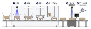 梱包後の箱のサイズと重量を測定し、測定データが運送会社へ自動送信される自動サイズ計測機も導入したことで、運送会社の荷受け時にサイズ・重量測定する作業も不要となる。