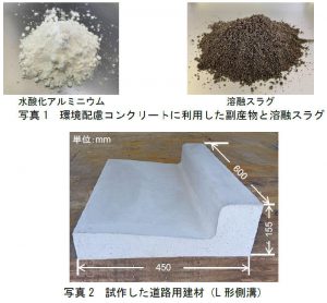 開発したコンクリートは、従来のコンクリートに使うセメントの代わりに製鉄時の副産物である高炉スラグと天然砂の代わりに溶融スラグを有効利用。さらに新幹線車両などに使われるアルミニウム製品の製造時に発生する副産物「水酸化アルミニウム」を刺激材として添加する。