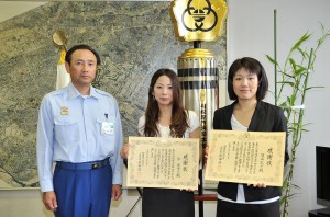 感謝状を贈られたのは、須山さんの友人で大阪府の会社員、原麻衣子さん(29)、市内の大学に通う東京都の三日市勇太さん(20)。