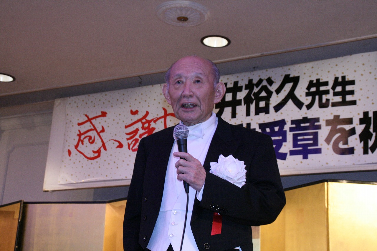 今年4月に旭日大綬章を受章した元財務大臣の藤井裕久氏の功績を祝う「叙勲受章を祝う会」が9月28日、ホテルラポール千寿閣(相模原市南区上鶴間本町)で開かれた。党員、サポーターなど約400人が詰め掛け、受章を祝った。