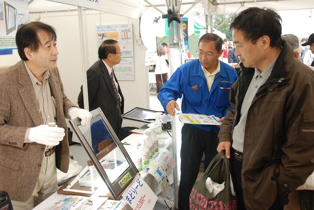 西側プロムナード会場には市内に拠点を置く、山田工業、トヨトミエレクトロニクス、クエイザーテクノロジー、地層科学研究所、松岡工房、吉岡印房の6社が出展。マイクロ水力発電、小型地震計、画像の3D化技術などを来場者にわかりやすく説明した。