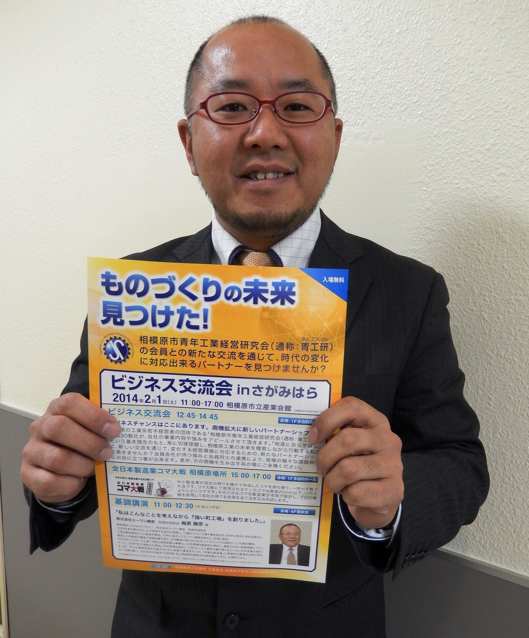 相模原市内のモノづくり系企業の若手経営者らが、自社の得意とする技術やサービスなどについて、内外に広くアピールするイベントが2月1日、市立産業会館(同市中央区中央)で開かれる。国内景気が持ち直しつつあるとはいえ、地域の中小企業にとっての経営環境は、依然厳しいまま。こうしたなか、若手経営者が協力。技術だけでなく、地元製造業の元気さも知ってもらう。こうしたイベントは県内でも珍しいという。同日は会場内で「全日本製造業コマ大戦・相模原場所」も開催される。(千葉 龍太/2014年1月20日号掲載)