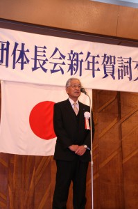相模原法人会会長で同団体長会の稲葉久二男氏があいさつ。稲場氏は「アベノミクス効果で景気は上向きではあるが、4月に消費税が上がり、景気動向が気になるところではある。しかし、今年は午年である。午は飛躍の年と言われている。日本経済にとっても飛躍の年になってほしい」と延べた。
