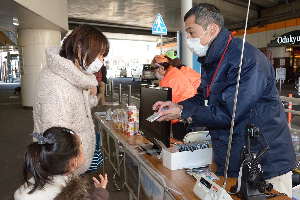開催されたのは、大和駅北口、中央林間駅改札前、高座渋谷駅西口付近で、大震災の記憶を風化させることなく、防災を考えてほしいと市が企画した。