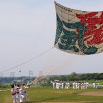 新戸地区では、「駿風」と書かれた14・5㍍四方の大凧で挑んだ。初日の4日には、大凧文化保存会の約100人が引き手となり、一斉に綱を引くと大きな凧が晴天の空を浮遊した。