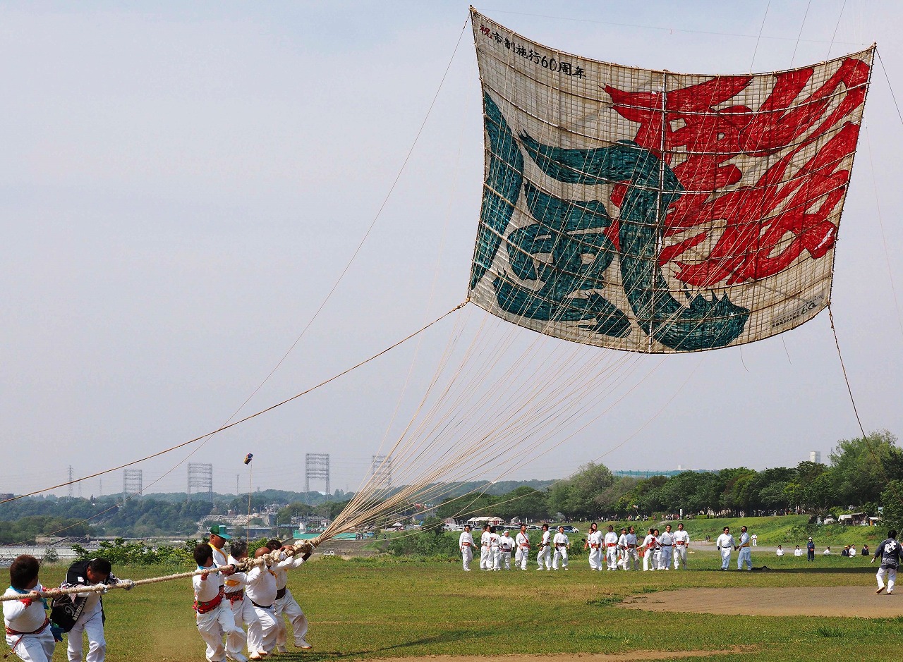 4、5日の両日、相模原市の相模川河川敷で、勇壮な大凧が空を舞った。約17万人が来場した。