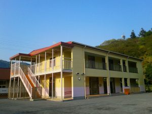 新園舎は鉄骨造り2階建てで、総床面積は約660平方メートル。最大定員数は90人。保健室や廊下の床材や腰壁には、津久井産木材を使用した。
