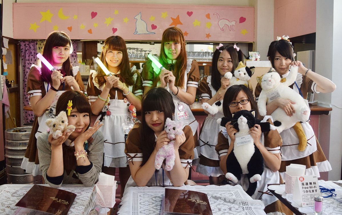料金は入国料として初回のみ500円。1時間のうち1回注文すれば、長時間の滞在が可能。公衆無線LANのWi-Fi(ワイファイ)も備えた。メニューは、メードがケチャップで絵を描くニャンニャンオムライスやストロベリーパフェなど15種類。ドリンクは、アルコールを含め、32種類を揃える。写真撮影やメードたちが踊りや歌を披露する指名制のライブも用意した。守屋代表は「女性や高齢者も利用できるメードカフェを目指したい」と話していた。 (2015年8月1日号掲載)