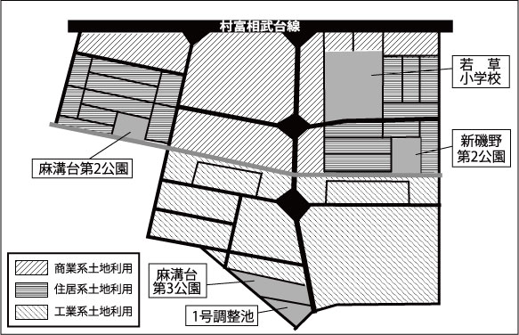 土地利用計画は、工業用地と住宅地の混在を改善し、間に緩衝帯として緑地を設ける。村富相武台線沿いに生活の利便性向上のため、商業系の土地利用を計画している。