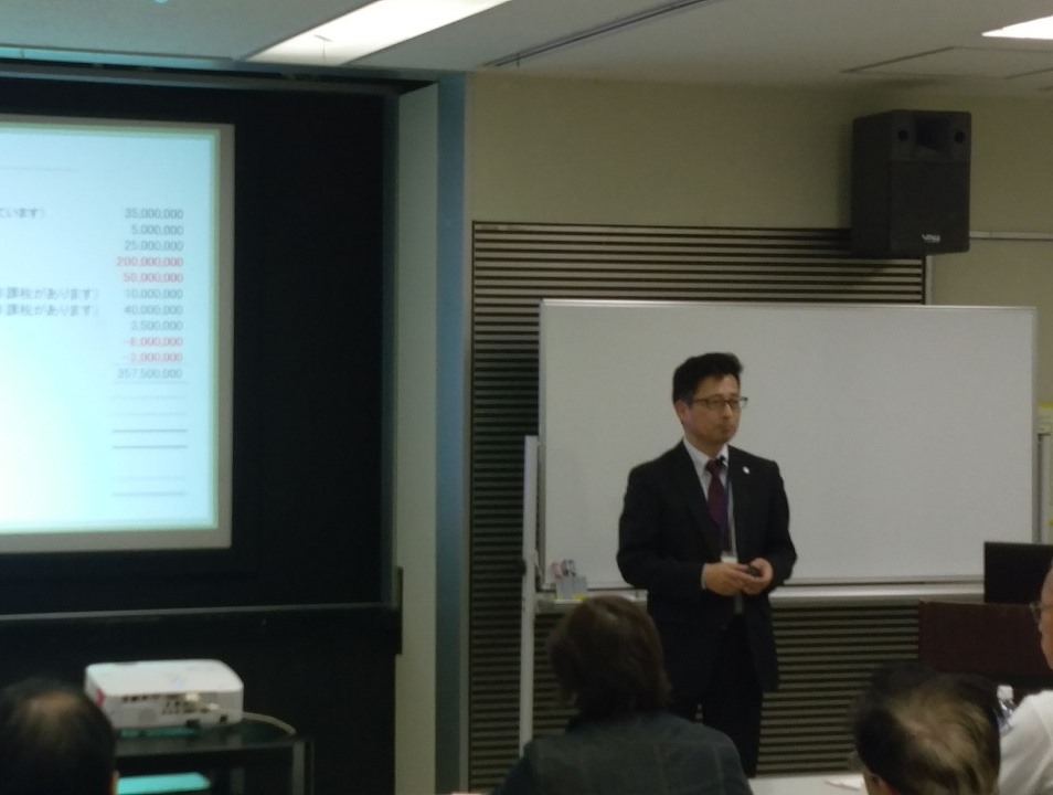 第二部では、同じく代表税理士の中山吉晴氏が、自社株の評価計算や、中小企業の事業承継税制について、実際に具体的な数字をあげながら、わかりやすく解説した。