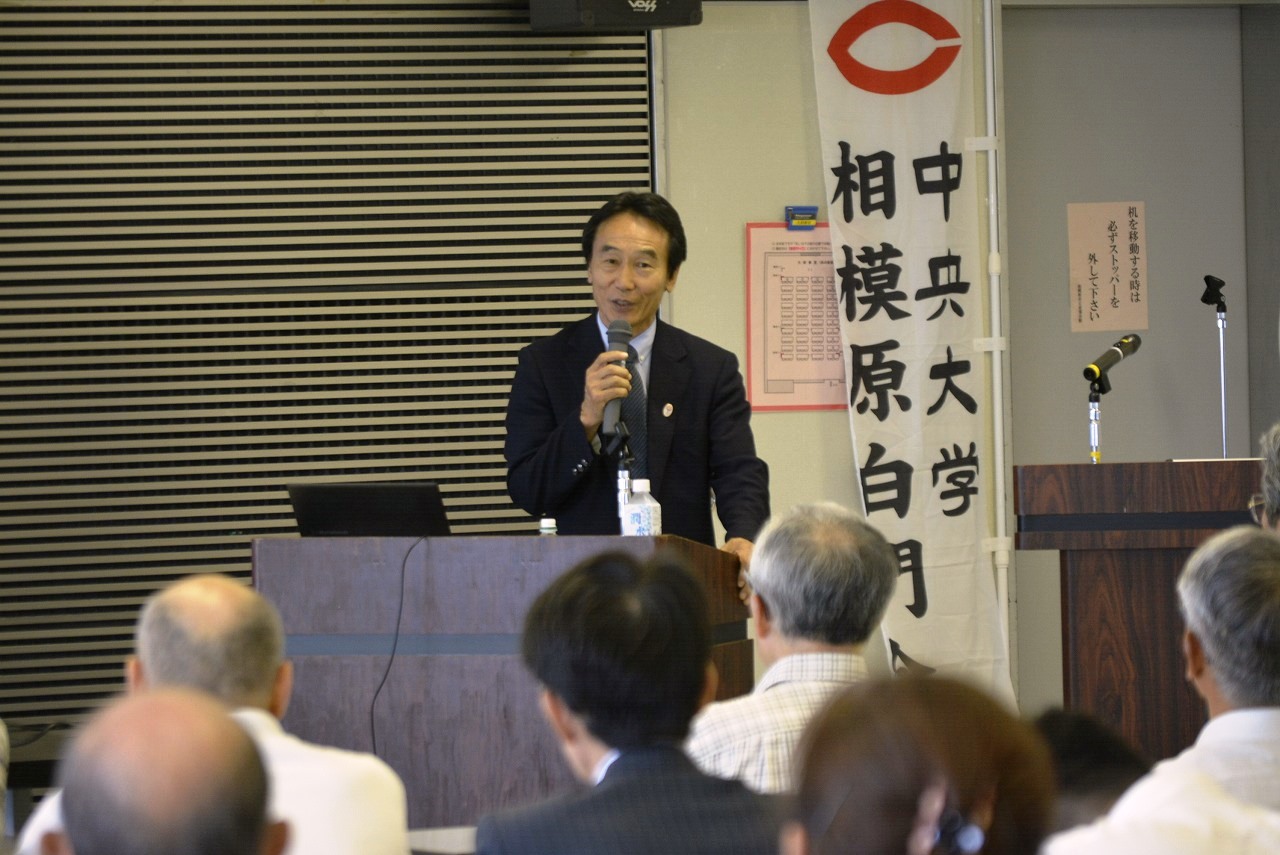 中央大学OB・OGの親睦団体「相模原白門会」は6月25日、相模原市産業会館で総会記念講演を開いた。英国の欧州連合(EU)離脱やアベノミクスのあり方など交えて、最新の世界情勢を説明した。