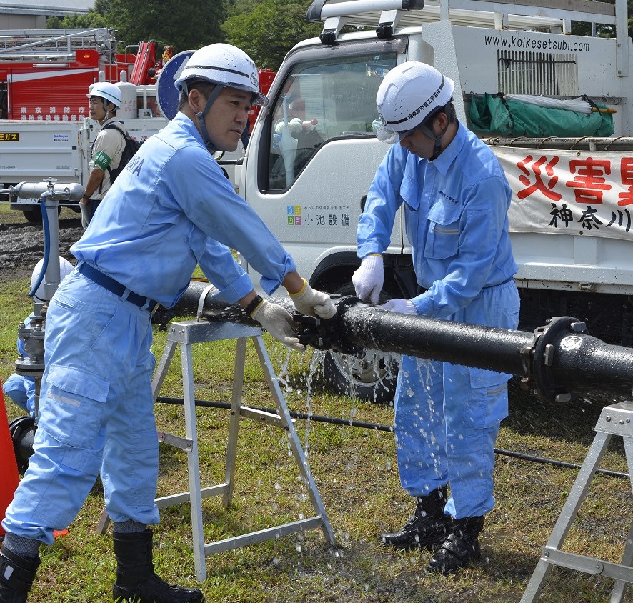市建設業協会や市管工事協会など、市と災害対策協定を結ぶ団体も協力。会員各社が保有する技術や機材で、がれきの撤去作業や水道管の応急復旧などを訓練した。