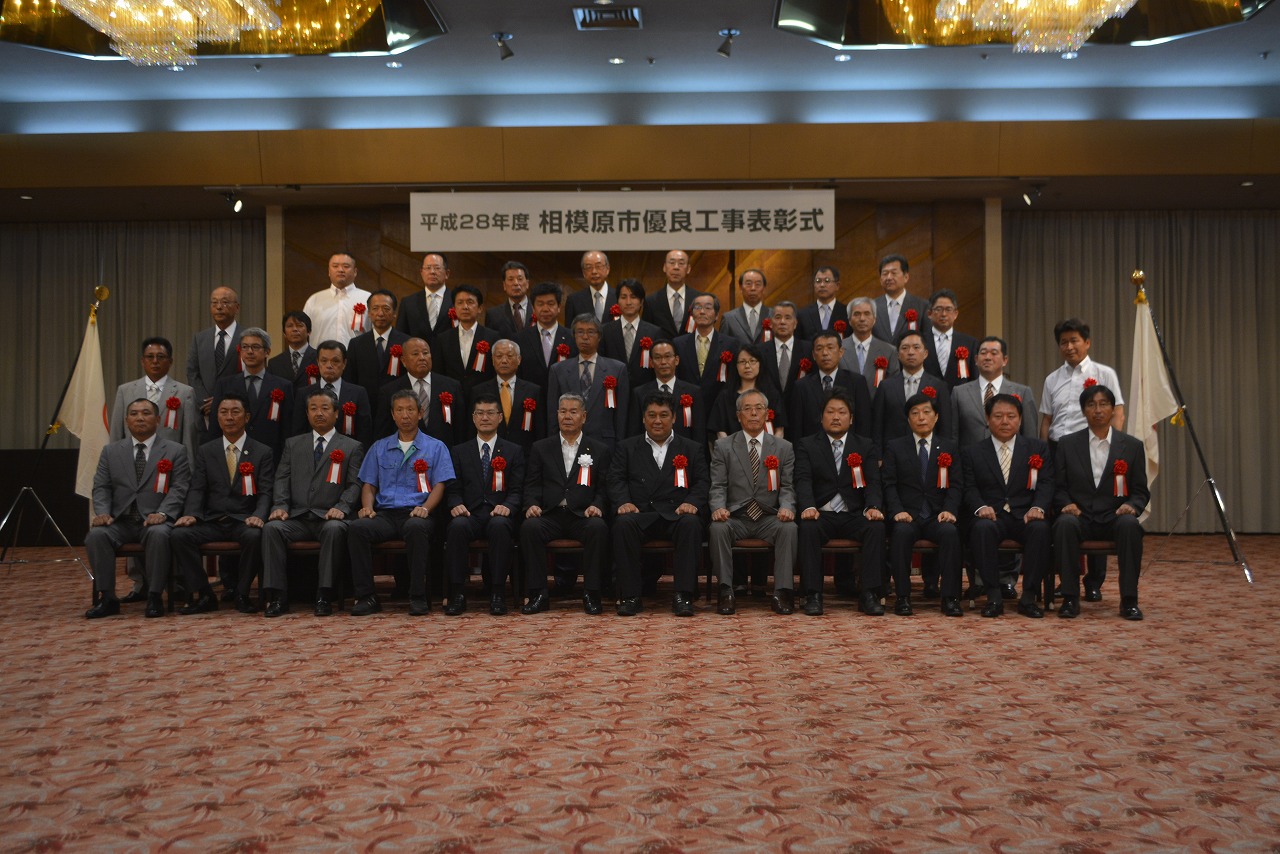 相模原市は8月24日、優良工事等表彰の式典をけやき会館(同市中央区富士見)で開いた。同市が発注し2015年度に完成した工事のうち、成績が優れた36件を優良工事として表彰した。