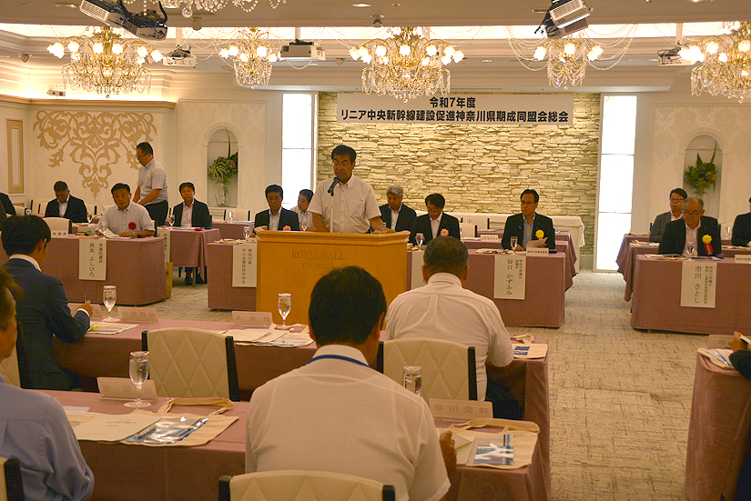 県や33市町村などで構成するリニア中央新幹線建設促進県期成同盟会(会長・黒岩祐治知事)の総会が7月23日、横浜市内で開かれ、全線の早期整備に向けた具体策の検討といった国やJR東海などへ求める決議を含む5議案を全会一致で採決した。相模原市内では山岳部トンネルや神奈川県駅(仮称)本体工事が本格化するなど県内で事業が進んでいることを踏まえ、移転住民の生活再建や周辺環境への影響低減などに配慮するよう求めた。【2025年8月1日号掲載】