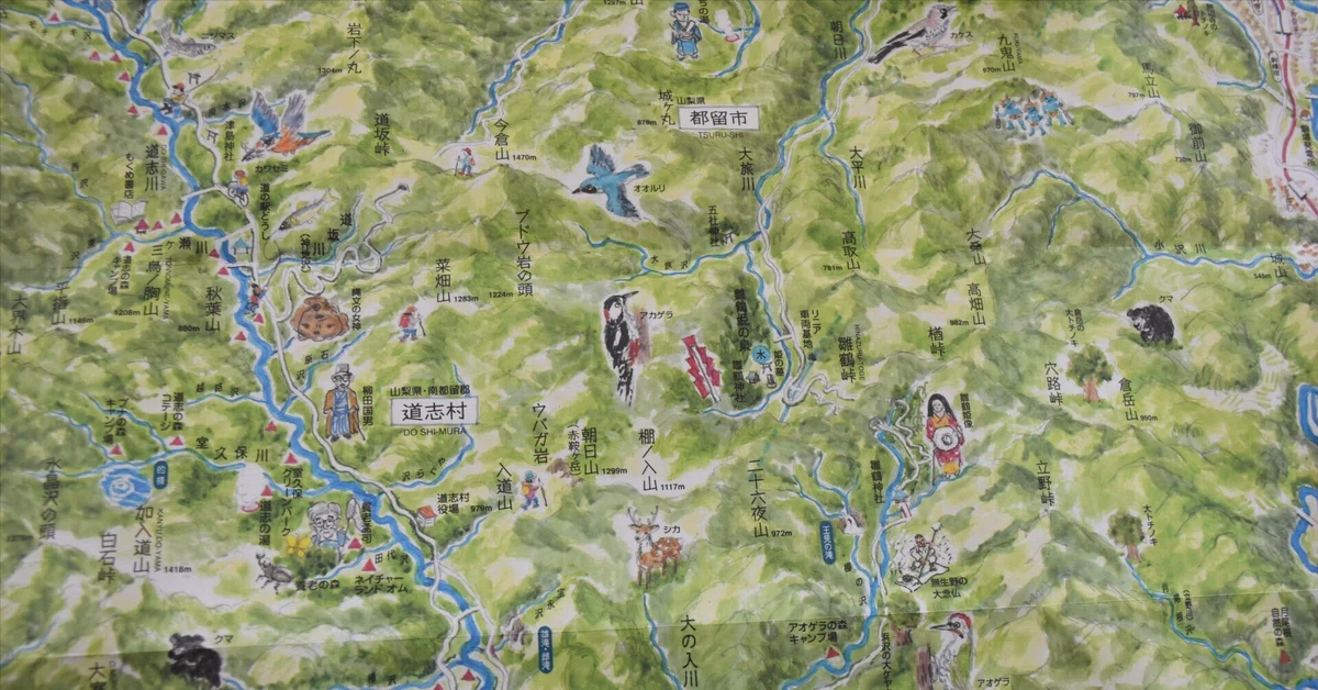 奥相模の豊かな自然、歴史伝承などを描いた「奥さがみ道志・桂川 散策絵図」を観光振興に尽力する相模原商工会議所副会頭で北辰企業社長の原幹朗さんが、構想から3年ほどかけて2024年に自費で企画制作した。都県や市町村を超えた広域観光の実現を目指した鳥観図で、さまざまな歴史伝承が描かれている。市民が地元の郷土史を知らずに、広域観光は不可能である。「市民が知らない奥相模歴史秘話」と題して、同地域に伝わる歴史伝承について連載していく。今号からは相模原市とも深い関係のある「雛鶴(ひなづる)姫伝説」について歴史伝承を探った。【2025年1月1日号掲載】