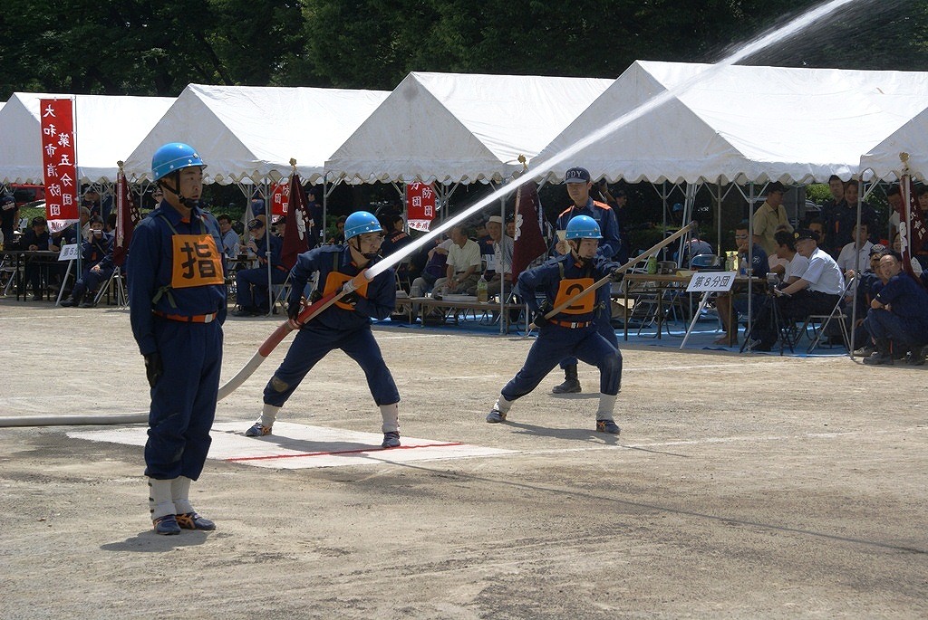 消防操法の技術向上と災害時の被害軽減を図ることを目的とした「大和市消防団操法大会」が7月21日、大和市柳橋の引地台公園で開かれた。