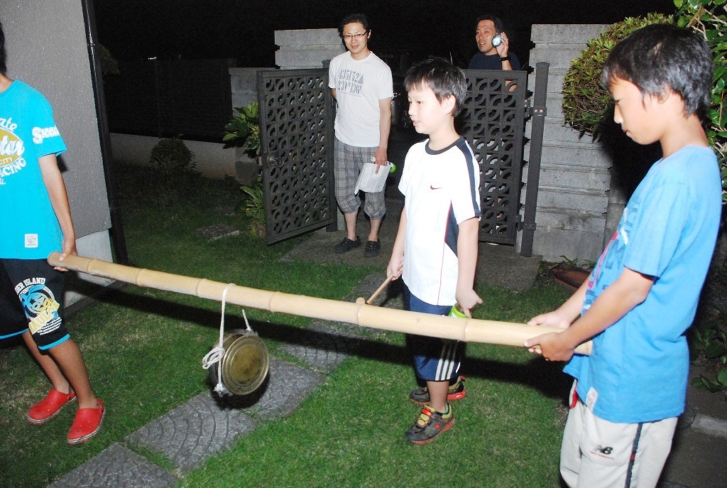 これは、数え年の13歳か14歳の男子が「子の刻」〔午前零時〕に鉦(かね)と数珠を持ち、地区内の家をまわって無病息災を祈りながら鉦を叩いて鳴らすもの。