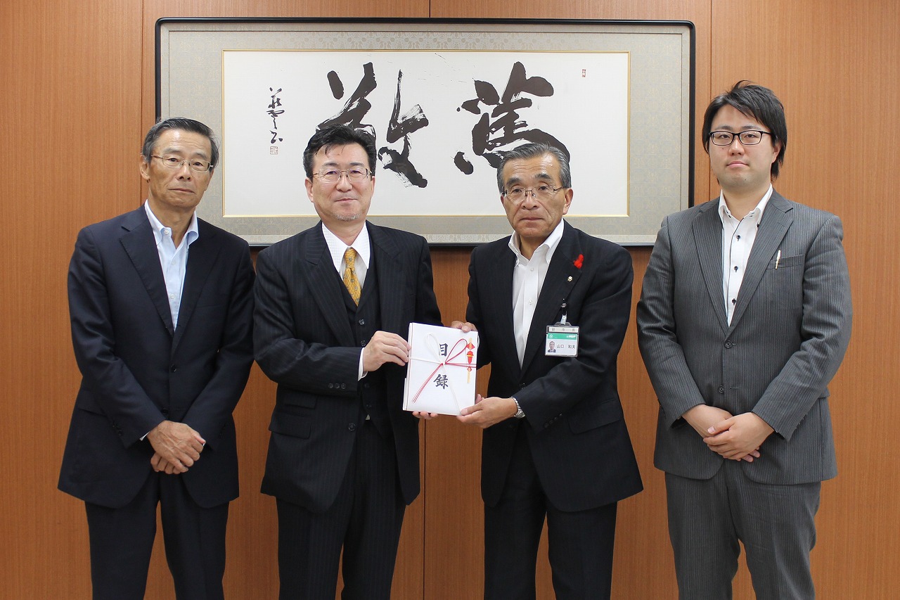 文具・事務用品販売の文盛堂(相模原市中央区千代田)はこのほど、東日本大震災で被災した大船渡市へ義援金を送るため、同市の山口和夫副市長を訪問した。
