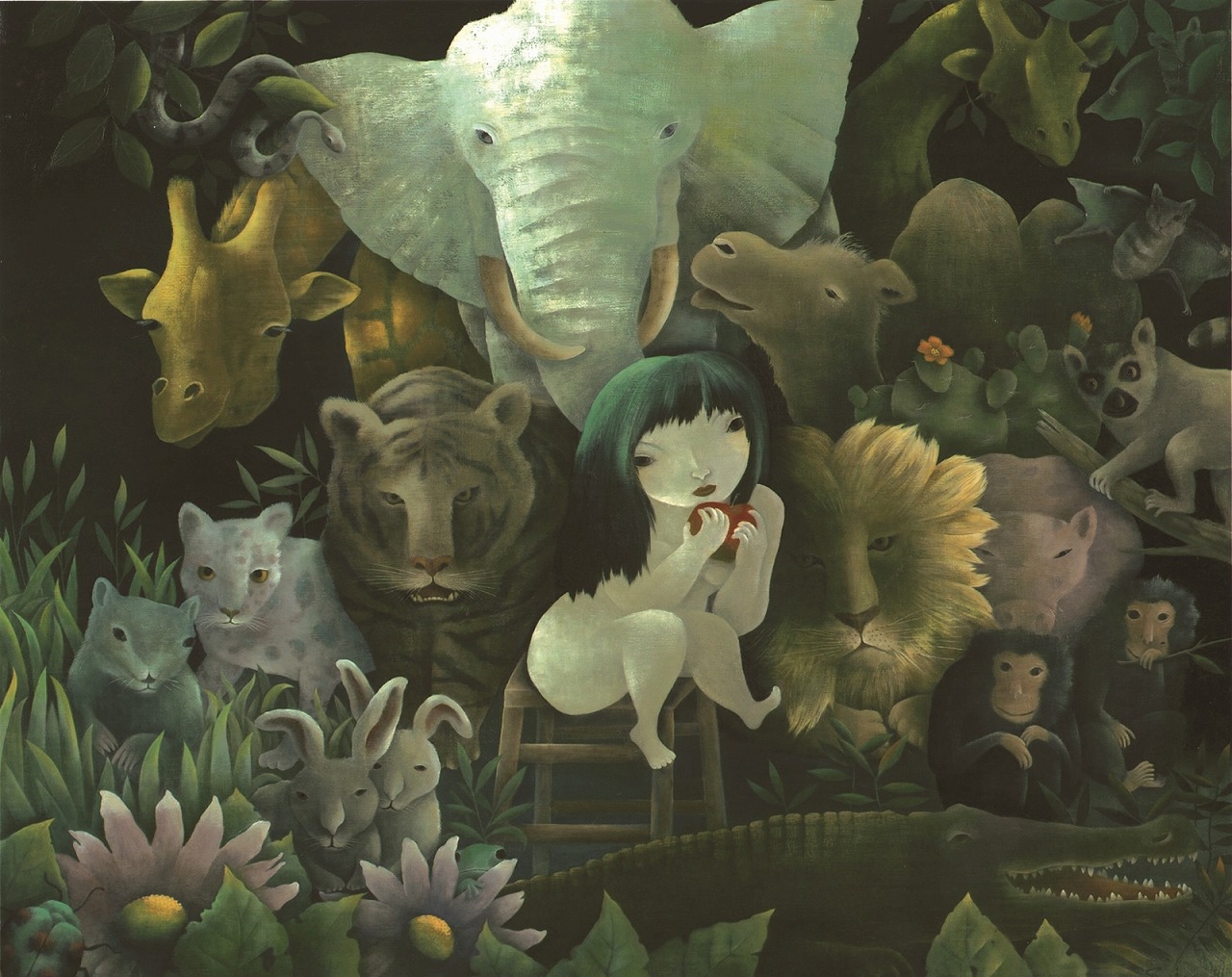 鈴木氏の作品は、深く生い茂る植物をモチーフに、デフォルメされた少女と動物たちの世界を幻想的に描いている。約20年前から絵を描き始め、03年には毎年、日展に入選を果たしている。その後、実力が認められ日展会友にも選ばれた。(船木 正尋、2013年11月10日号掲載)