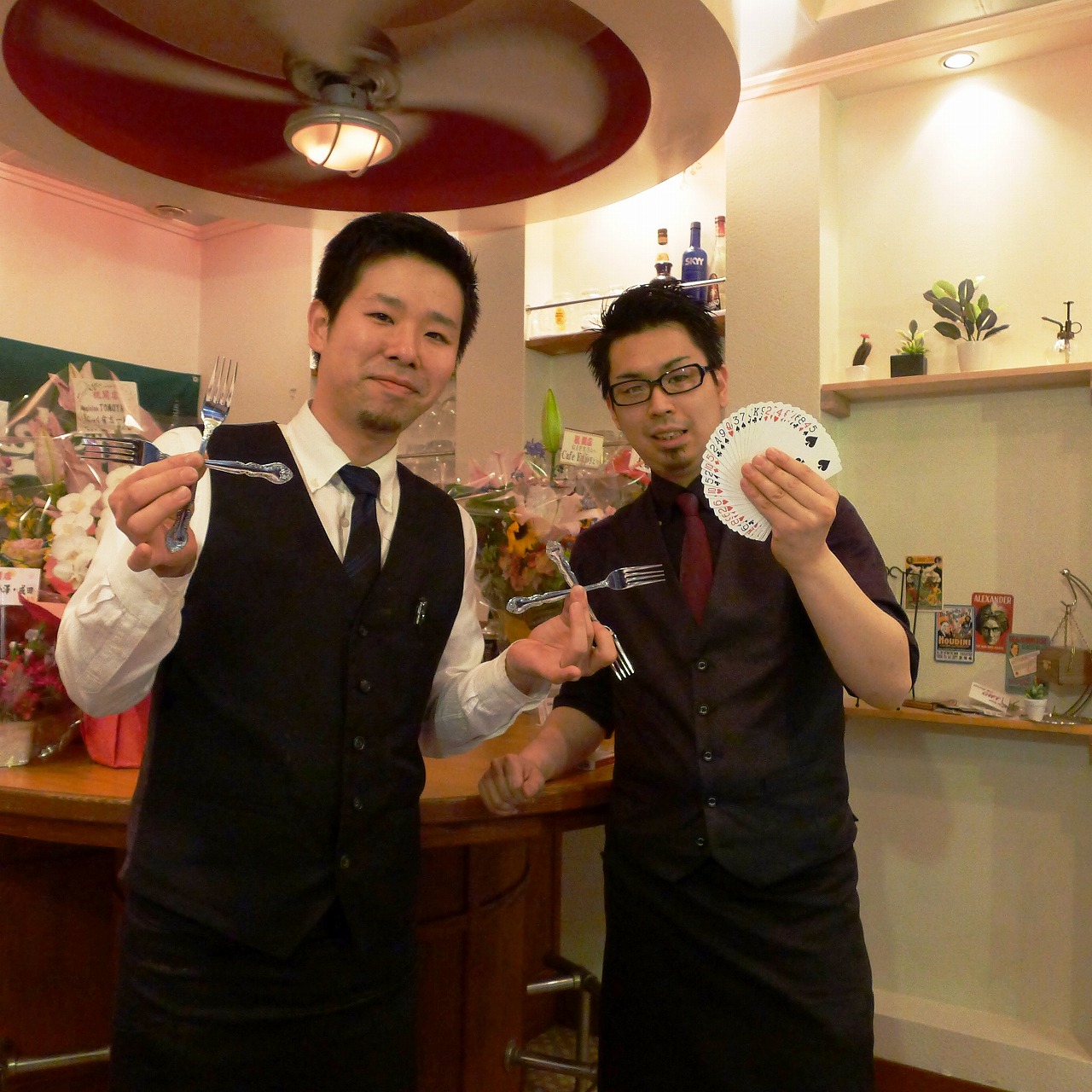 調理を担当しているのは、昼は行政書士としての顔も持つオーナー、島影裕司さん。和・洋・中の店で腕を振るった経歴を持つ。さらに行政書士の営業ツールとして習得したマジックを披露する。店長を務める伊藤智哉さんは、マジック歴11年の腕前。ロープを使ったマジックなどが得意という。伊藤さんは「マジックの不思議な時間を過ごしてもらいたい」と話していた。(2014年5月10日号掲載)