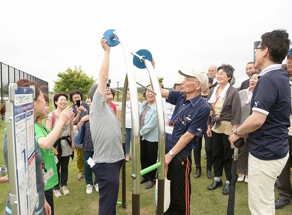 大和市は4日、大和ゆとりの森(同市福田)で「健康遊具」の体験会を開いた。