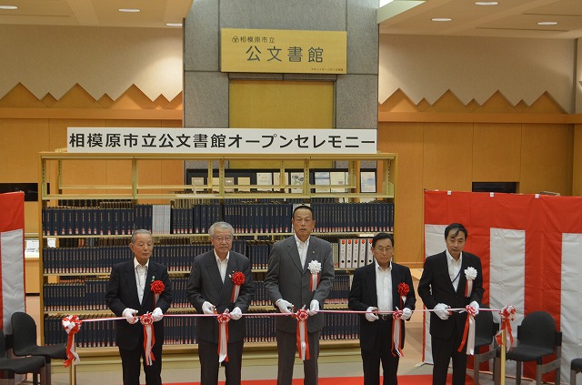 市は同日、オープンセレモニーを開催。県・市両議会や地元自治会、近隣市町の公文書館などから関係者約30人が招待され、テープカットで開館を祝った。
