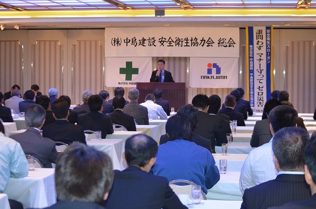 中島建設と協力会社で組織する安全衛生協力会は先月22日、相模原市内のラポール千寿閣で「第42期総会」=写真=を開き、同社の社員や協力会の会員ら約300人が労働災害の撲滅を誓った。