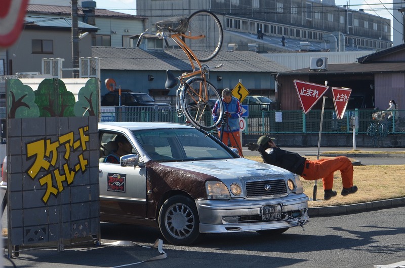 イベントでは、プロのスタントマンが自動車の巻き込み事故などを再現した。自転車に乗った男性が自動車に衝突され、衝撃音とともに宙を舞うと、見学者から悲鳴が上がった。