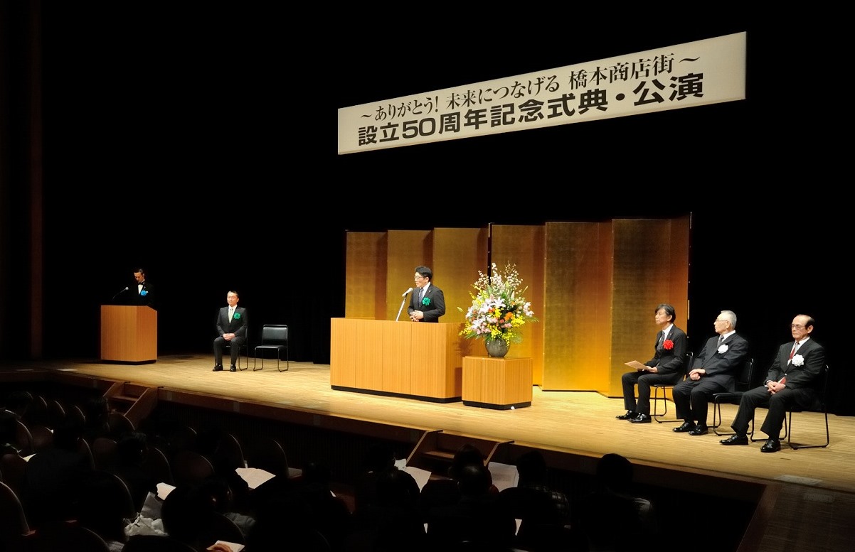 橋本商店街協同組合(相模原市緑区橋本)は3月4日、杜のホールはしもと(同)で「設立50周年記念式典」を開いた。相模原商工会議所の杉岡芳樹会頭や商店街関係者、近隣住民など、約430人が詰めかけた。