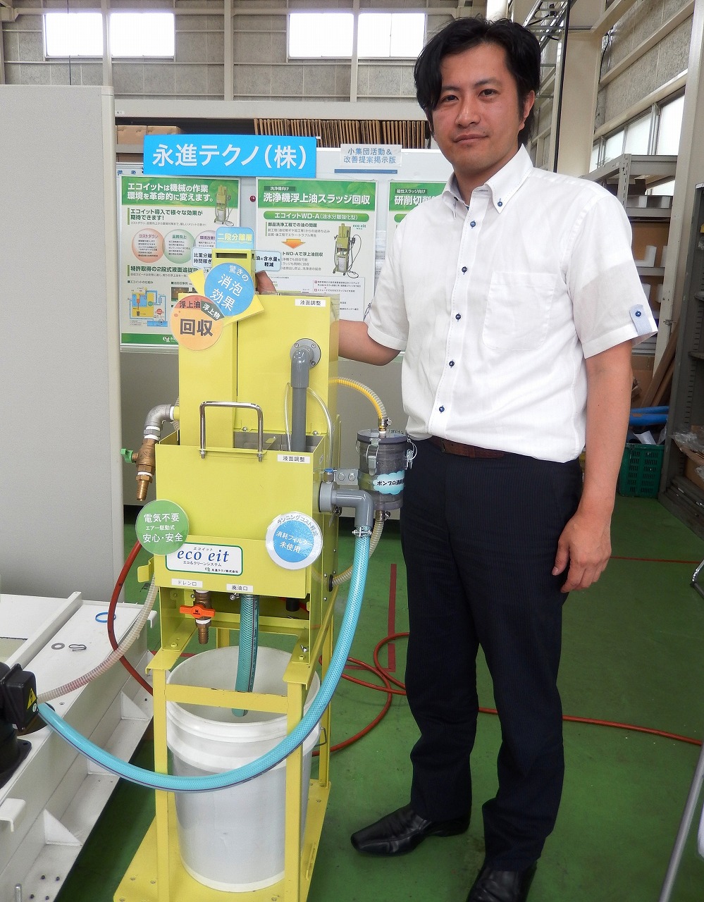 相模原で唯一認定された永進テクノは、環境装置「エコイット」の製造販売が主力。
