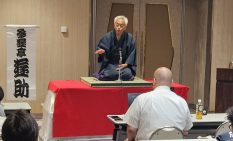 企業経営者や士業らによる慈善活動団体・相模原ニューシティロータリークラブ(RC)は17日、市立産業会館(相模原市中央区中央3)で例会を開き、日本におけるロータリーの歴史と精神を改めて学ぼうと米山梅吉氏の生い立ちを語る落語家を招いた卓話を行った。同RCの会員のうち35人のほか、同RCが所属する第27