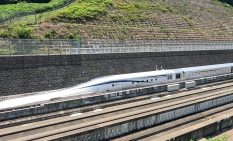 JR東海は7月25日、中央新幹線(リニア)の改良した新たな試験車両を投入した。車体表面に微細な縦溝構造を持つ特殊なフィルムを採用したほか、台車周りの形状を最適化して、従来よりも空気の抵抗や電力消費を低減する。山梨リニア実験線(山梨県笛吹市―同県上野原市)で公開した。【2025年8月1日号】 改良