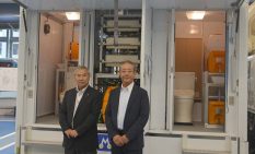 神奈川トヨタ自動車(横浜市神奈川区)と日本大学工学部発ベンチャー企業のe6s(エシックス)は、小型トラックに搭載できる「完全自立型移動式水洗トイレ」=写真㊤=を共同開発し、10月21日に報道向けに公開した。停電や断水などインフラが失われた災害現場でも、家庭用トイレに近い使い勝手で利用できることを目